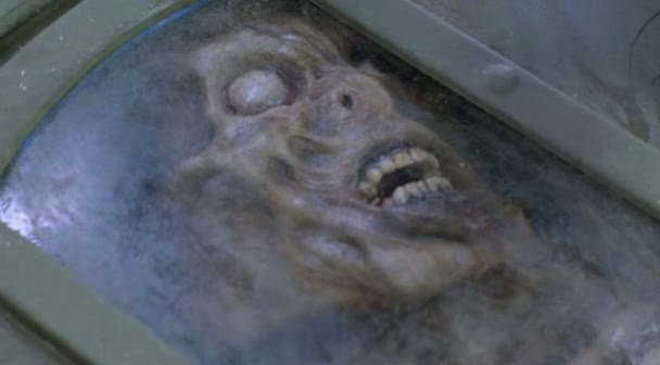 Надо сказать, что начинается Возвращение живых мертвецов 3 очень вяло: актеры достаточно посредственно изображают сотрудников военной базы, в которую чудесным образом, не смотря на всяческие меры безопасности, попадает пара подростков – чисто поглазеть чего же там такого секретного. Опять же мистическим образом то, что так старательно скрывается в недрах базы вдруг вырывается наружу. Я уже было приготовился к очередным полутора часам трэша (возможно из-за того же стереотипа, что сиквел редко бывает лучше оригинала, а Возвращение живых мертвецов 2 по моему мнению было немного хуже оригинала), но… фильм вдруг стал преображаться, с каждой минутой становясь все лучше, интереснее, страшнее, окончательно и бесповоротно захватывая все внимание.
