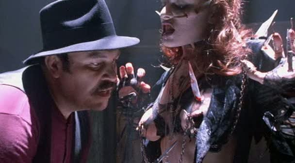 По поводу грима отдельный разговор. Блестяще! Особенно уроды из контейнеров. Невольно возникает желание отвернуться, но сделать это невозможно (это же такая красота…). Отвратнее их разве что бедный негр с полуотьеденной верхушкой головы. Невыносимо муторное зрелище)